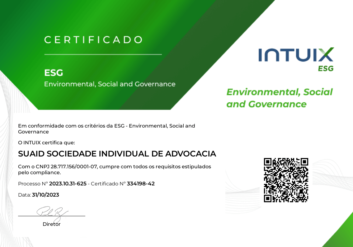 Estas certificações são uma demonstração sólida do comprometimento da Suaid Advocacia Associada com a sustentabilidade ambiental, governança corporativa, responsabilidade social e proteção de dados.